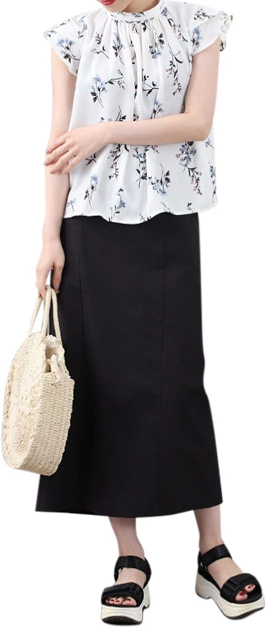 露出を最低限に抑えられる、ロング丈のタイトスカートです。リネン風の涼しげなコットン素材を使用しているため、重たくならずバックにスリットが入っているので窮屈な感じもありません。