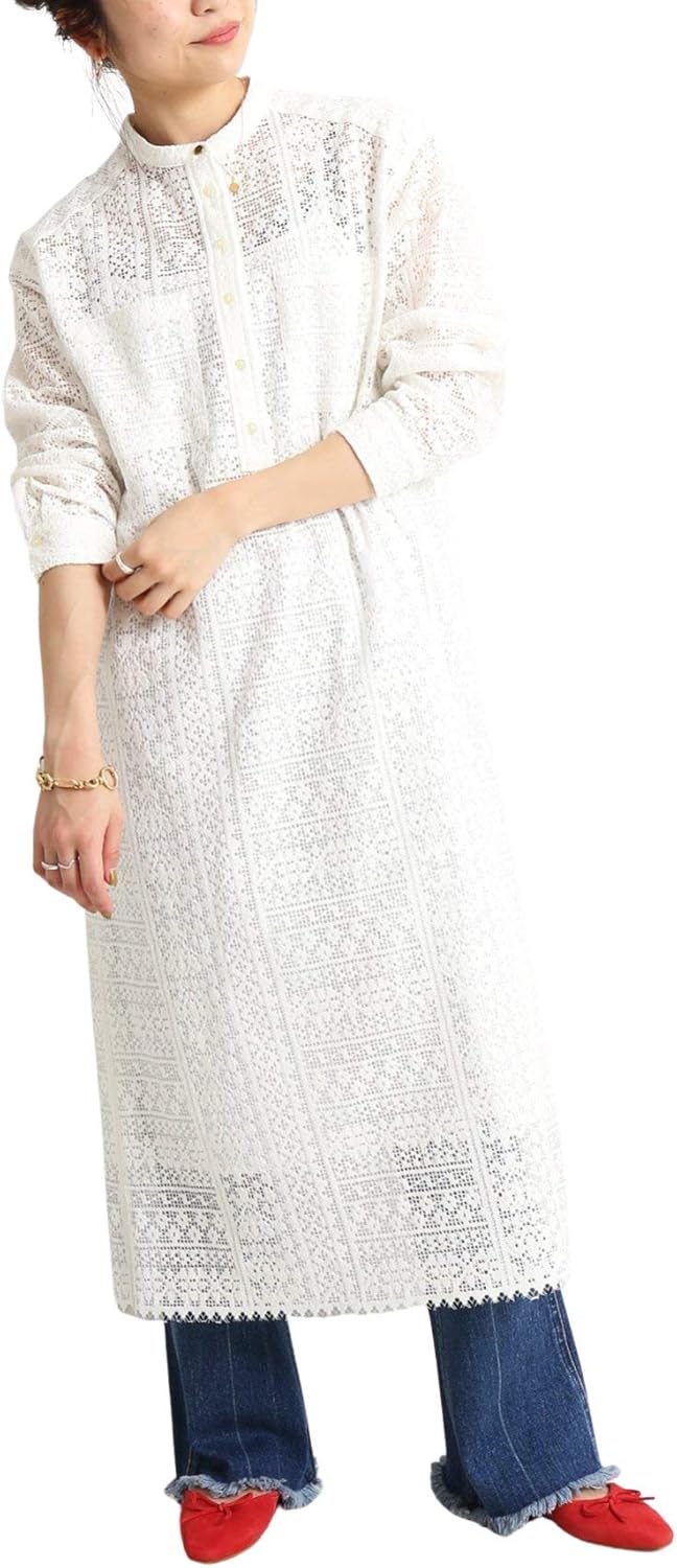オーガニックコットンを使用し、肌にも優しい総レースのワンピースです。すっきりとしたバンドカラーのデザインで、レイヤードスタイルにもぴったりでしょう。自宅でお手入れ可能なのも嬉しいポイントとなっています。