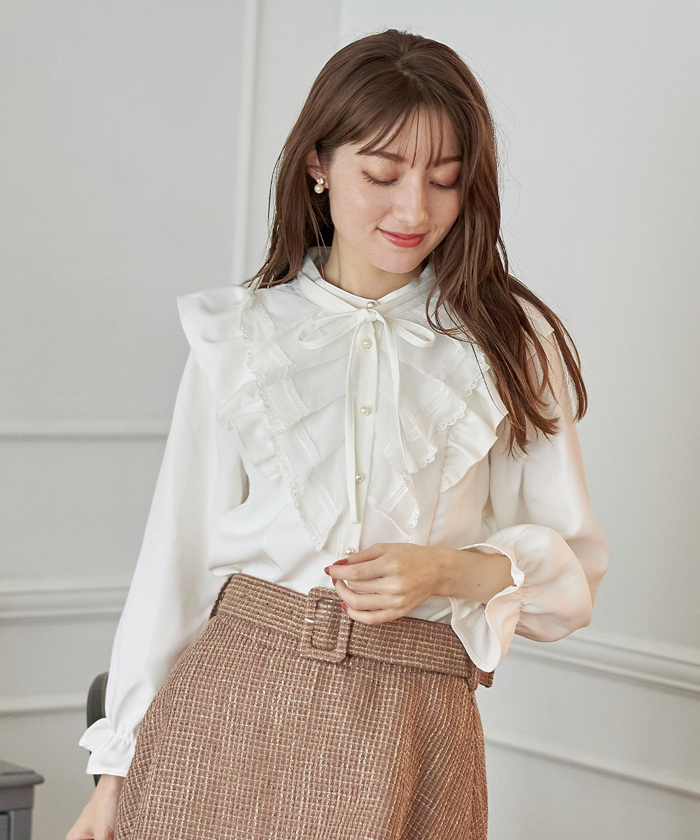 Perle Peche(ペルルペッシュ)は、フレンチクラシックをベースとした、上品でクラス感のあるフェミニンスタイルが得意なブランドです。デイリーに使える服からとっておきの日に着る服まで、幅広く展開しています。